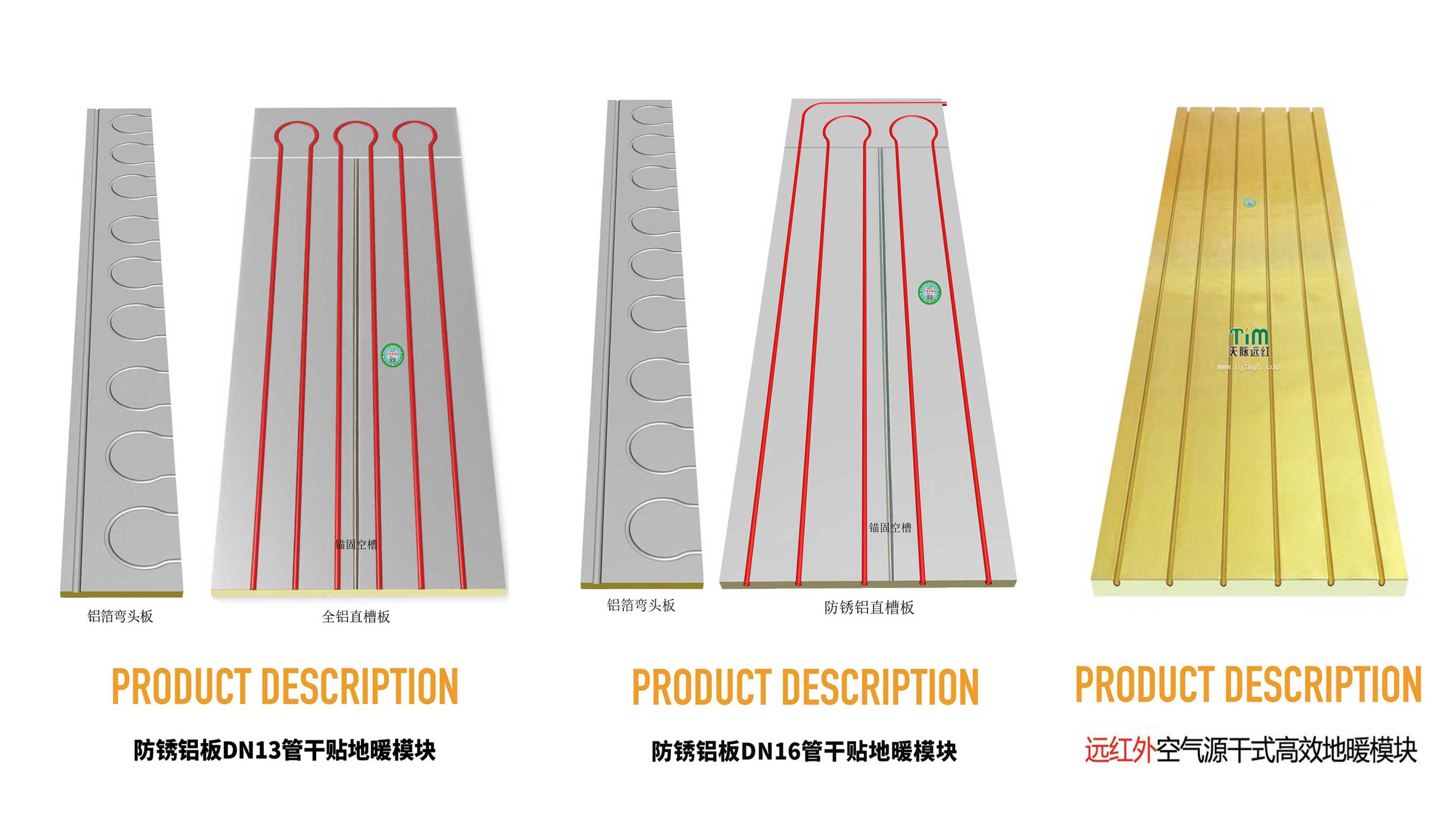 公司產(chǎn)品包括全鋁板環(huán)保干式水/電地暖模塊系列、遠(yuǎn)紅外干式地暖模塊系列、空氣源熱泵高效末端系列、老房快裝地暖系列、汗蒸房墻暖系列。產(chǎn)品入選《百年中國》科技匯編,被中國建筑裝飾裝修材料協(xié)會(huì)認(rèn)定為中國綠色、節(jié)能、環(huán)保建材產(chǎn)品。